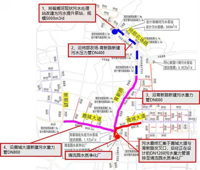 該項(xiàng)目的實(shí)施,將解決該片區(qū)污水管道終端出處的問題,撤除檳榔河現(xiàn)狀臨時污水處理站,新建規(guī)模為5000m3/d的污水提升泵站,并在師部農(nóng)場路、育新路及鹿城大道擴(kuò)容升級污水管道,將檳榔河片區(qū)及妙林片區(qū)的污水轉(zhuǎn)輸接入育新路污水提升泵站,近期排入荔枝溝水質(zhì)凈化廠處理,遠(yuǎn)期經(jīng)育新路污水主管道接入清流園水質(zhì)凈化廠處理,全面解決以往污水處理能力不足、污水集中收集率不高等問題,改善周邊群眾的生活環(huán)境。