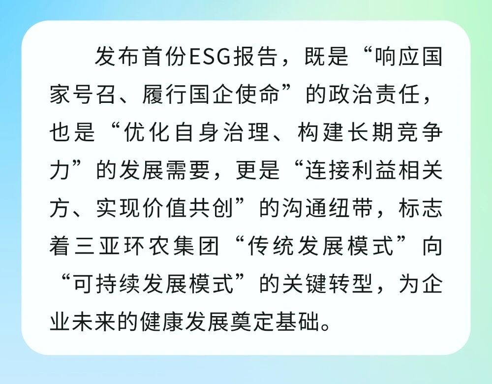 三亞環(huán)農(nóng)集團(tuán)首次發(fā)布ESG報(bào)告 開(kāi)啟可持續(xù)發(fā)展新篇章