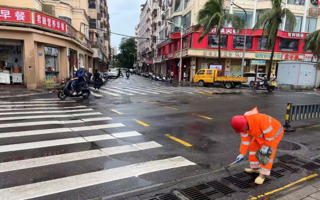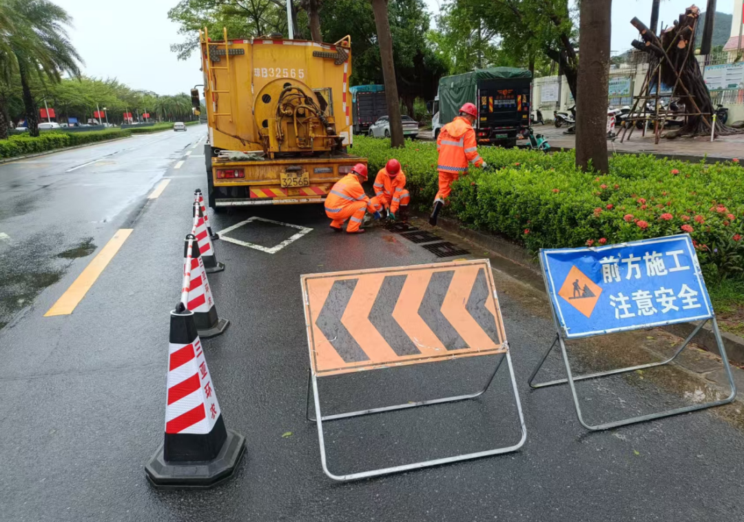 小長(zhǎng)假期間,三亞市污水管網(wǎng)管理有限公司(簡(jiǎn)稱(chēng)“管網(wǎng)公司”)組建排澇專(zhuān)業(yè)隊(duì)伍嚴(yán)陣以待,在風(fēng)雨來(lái)臨前迅速啟動(dòng)應(yīng)急響應(yīng)機(jī)制,并借鑒以往臺(tái)風(fēng)應(yīng)對(duì)經(jīng)驗(yàn),300余名應(yīng)急保障人員提前在低洼路段和易積水區(qū)域前置布防應(yīng)急搶險(xiǎn)設(shè)備。大功率抽水泵、發(fā)電機(jī)等專(zhuān)業(yè)設(shè)備被提前部署到關(guān)鍵點(diǎn)位,確保一旦出現(xiàn)積水情況,能夠第一時(shí)間開(kāi)展應(yīng)急抽排作業(yè)。在抗擊臺(tái)風(fēng)的過(guò)程中,他們晝夜不停,始終堅(jiān)守在排澇一線,清理堵塞的雨水篦子,打開(kāi)井蓋加速排水,設(shè)置危險(xiǎn)標(biāo)識(shí),確保排水暢通,在臺(tái)風(fēng)肆虐時(shí)成為了這座城市最堅(jiān)實(shí)的防線。