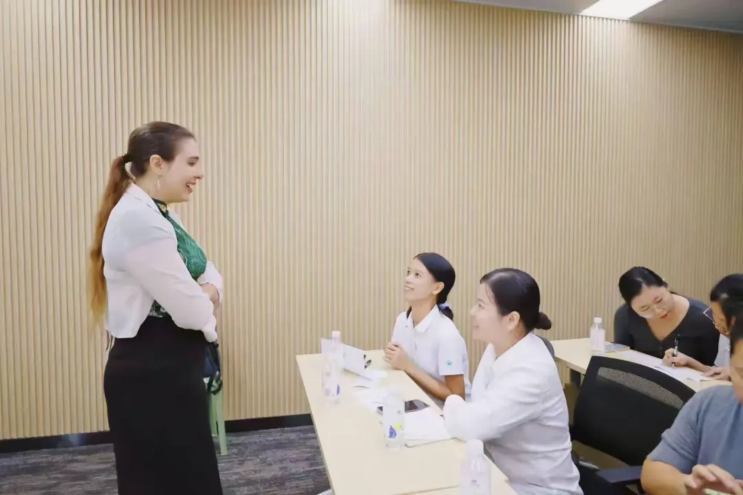 在互動練習(xí)環(huán)節(jié),同事們兩人一組結(jié)對,運用剛剛學(xué)到的詞匯和句式進(jìn)行對話演練,隨后各組依次上臺展示。大家沉浸式投入角色,大膽表達(dá)交流。外教現(xiàn)場糾正發(fā)音誤區(qū)和表達(dá)不當(dāng)之處,提出優(yōu)化建議,幫助大家精準(zhǔn)提升語言應(yīng)用能力?,F(xiàn)場互動氛圍熱烈,每一次精彩演示都贏得陣陣掌聲。