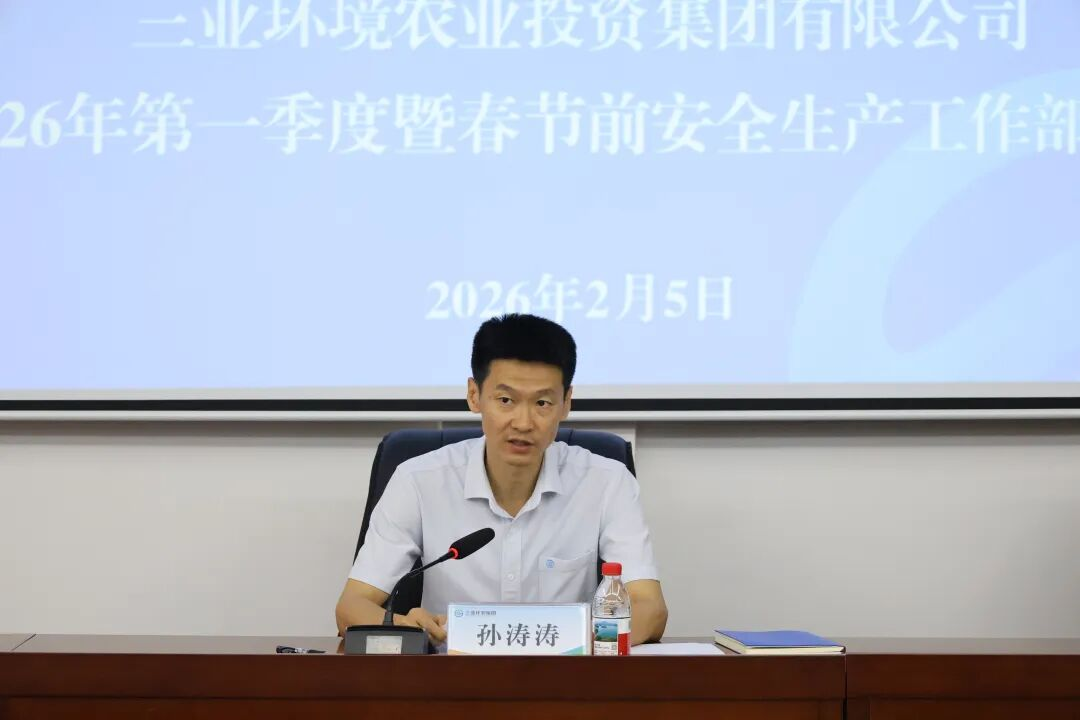 為深入貫徹落實習(xí)近平總書記關(guān)于“統(tǒng)籌發(fā)展和安全”的重要指示精神,全面總結(jié)2025年安全生產(chǎn)工作,分析當(dāng)前面臨的嚴(yán)峻形勢與挑戰(zhàn),系統(tǒng)部署2026年重點任務(wù)及春節(jié)、全國兩會等關(guān)鍵時段安全保障措施,2月5日下午,三亞環(huán)農(nóng)集團(tuán)黨委副書記、總經(jīng)理孫濤濤在集團(tuán)八樓會議室主持召開2026年第一季度暨春節(jié)及全國兩會期間安全生產(chǎn)工作會議。集團(tuán)領(lǐng)導(dǎo)班子、相關(guān)部門及各子公司安全生產(chǎn)分管負(fù)責(zé)人、安全管理人員參加會議。